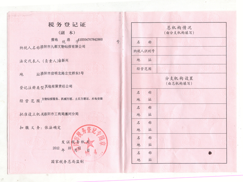 洛陽市九都文物鉆探有限公司 聯(lián)系人:金經(jīng)理 手 機:139-0388-2796 手 機:186-3790-0056 地 址:河南省洛陽市瀍河回族區(qū)恒大綠洲60-105鋪 公交路線:乘坐41路 塔西站下車